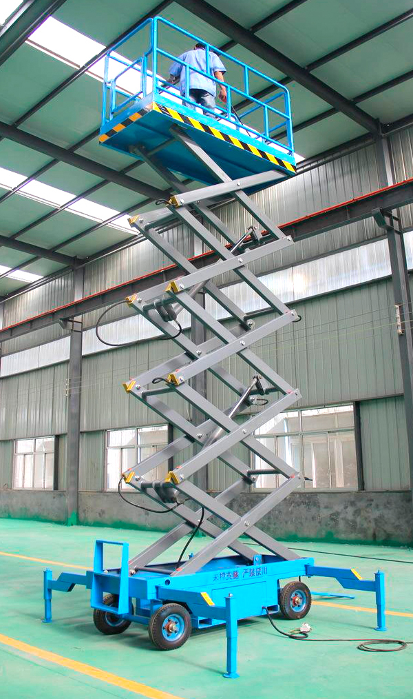 移动剪叉升降平台采用剪叉式升降结构,升降动力分为220V/380V电源或电瓶驱动,还可根据要求配置手动液压装置,可在停电或无电源场所照常进行升降工作。移动剪叉升降平台有人工移动和电动移动式两种,它的剪叉式机械结构,使升降平台起升后有较高的稳定性,宽大的作业平台和较高的承载能力,因此它具有移动灵活、升降平稳、操作方便、载重量大等特点,是高空作业之必备产品。