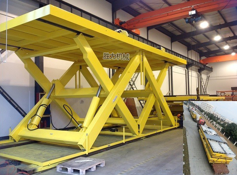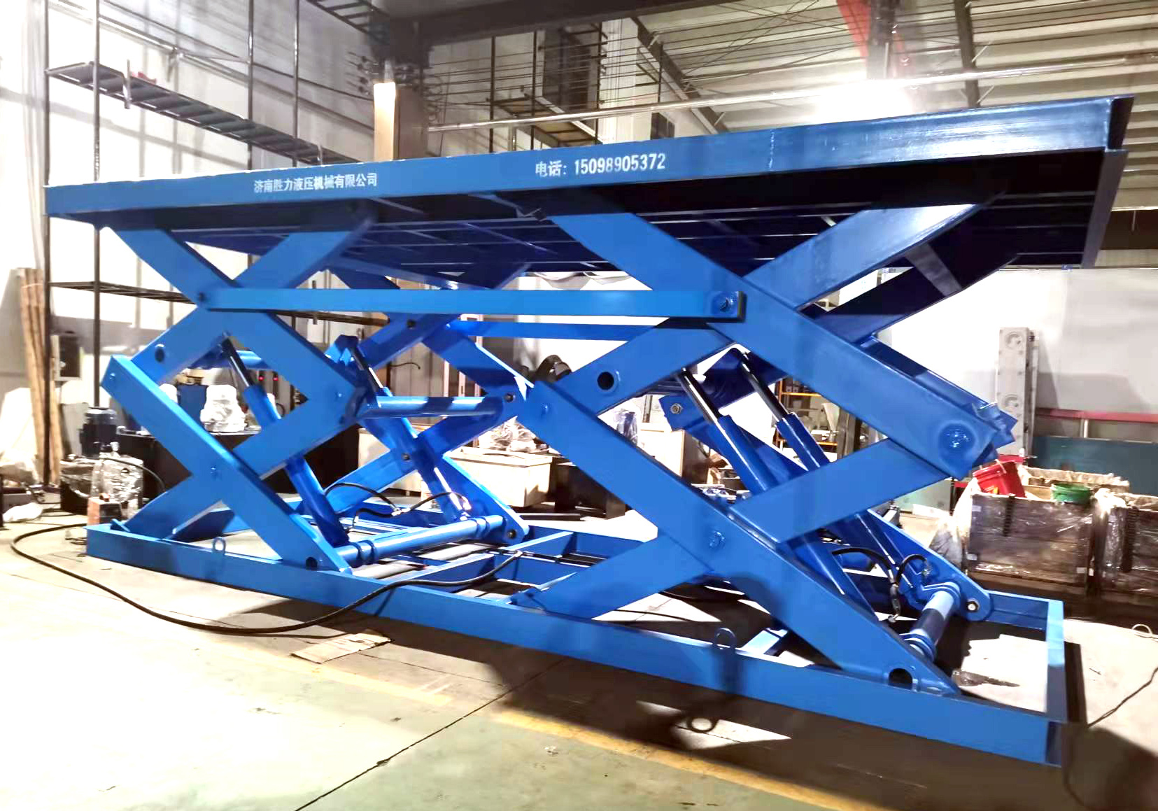 双跨剪叉式升降平台大多用于体积较大货物的升降运输,产品液压系统设置防坠、超载安全保护装置,各楼层和升降台工作台面均可设置操作按钮,实现多点控制。双跨式升降平稳、承载能力大,可承载100吨。该设备无需楼顶机房,工作时平台直接从地面起升,到达所需高度后自动停止,作业完毕平台回落到与地面平齐状态,不占据地面空间,不影响通道通行。双跨剪叉升降平台结构坚固,安装维修简单方便,是经济实用的低楼层间替代电梯的理想货物输送设备。